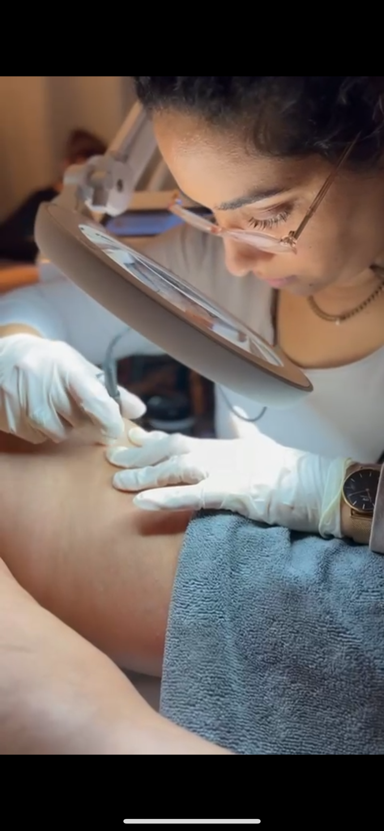 Nous réalisons ensuite un test pratique sur une petite zone. Cela vous permet de découvrir la technique, de vérifier la tolérance de votre peau et de constater les premiers résultats.